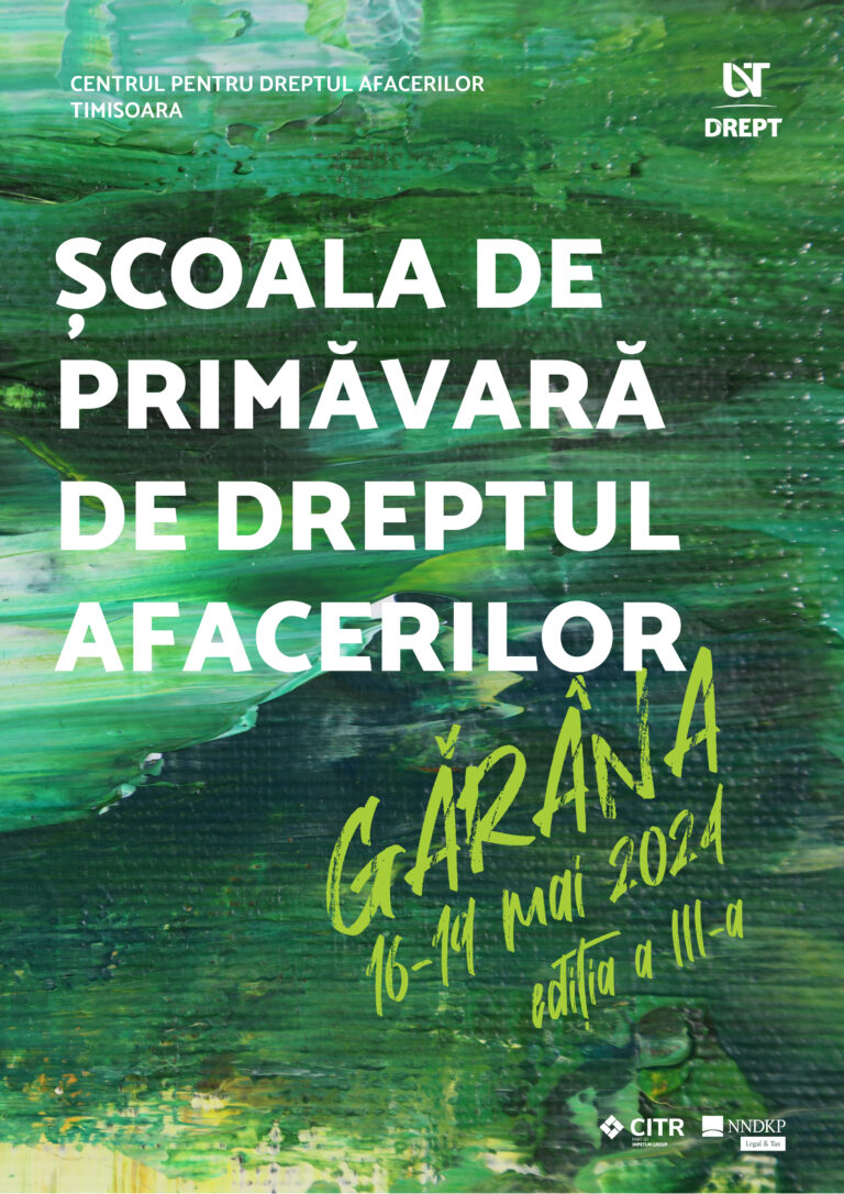 Facultatea de Drept din cadrul Universității de Vest din Timișoara, prin Centrul pentru Dreptul Afacerilor Timișoara, a organizat, în perioada 16-19 mai 2024, la Gărâna, în județul Caraș-Severin, a treia ediție a Școlii de Primăvară de Dreptul Afacerilor.