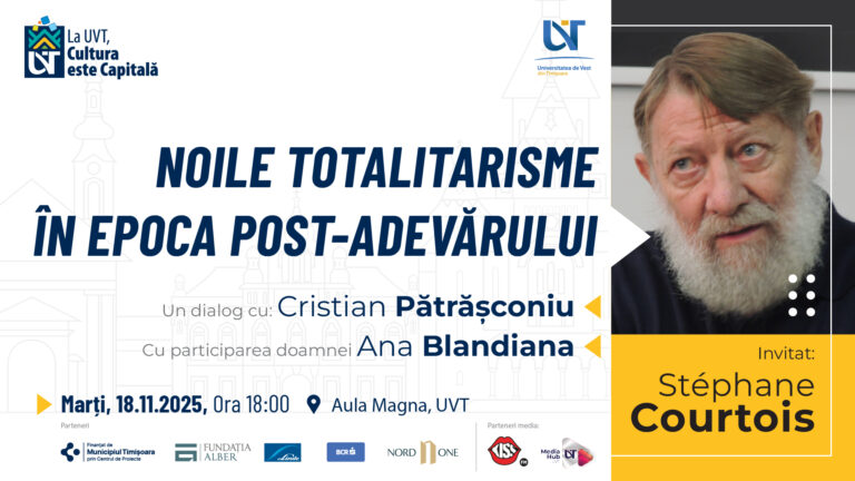 Istoricul francez Stéphane Courtois, unul dintre cei mai influenți cercetători ai comunismului european, a fost prezent la UVT pentru o conferință-eveniment, intitulată „Noile totalitarisme în epoca post-adevărului”, care a avut loc marți, 18 noiembrie, de la ora 18:00, în Aula Magna „Ioan Curea”. Într-un dialog cu publicistul și scriitorul Cristian Pătrășconiu, istoricul Stéphane Courtois a abordat teme și întrebări precum: «Ce înseamnă totalitarism într-o lume a manipulării subtile, a dezinformării și a „adevărurilor alternative”? Cum se reconfigurează ideologia în epoca post-adevărului?»