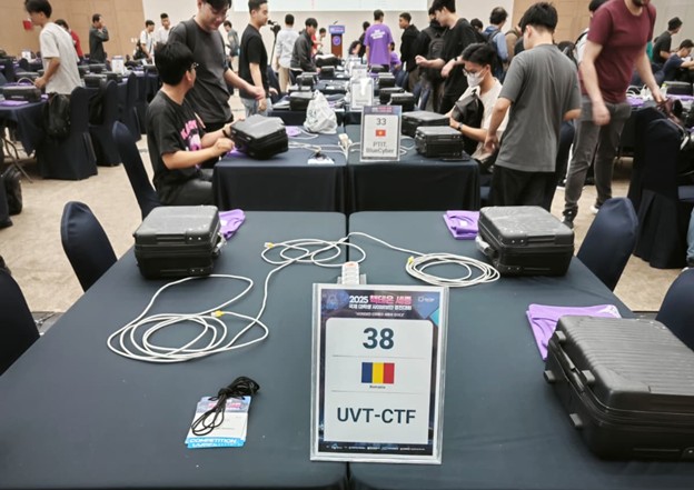 Trei studenți ai Universității de Vest din Timișoara, membri ai echipei UVT CTF, au reprezentat instituția în finala competiției internaționale de securitate cibernetică HackTheon Sejong 2025, desfășurată în perioada 12-14 august 2025, la Government Sejong Convention Center din Coreea de Sud.
