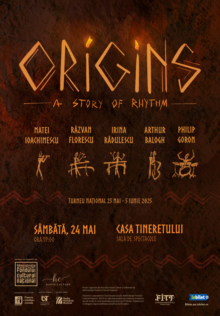 Avem bucuria de a vă anunța lansarea Turneului național „ORIGINS – A Story of Rhythm” un nou proiect muzical de excepție situat la granița dintre world music, jazz și muzica cultă-contemporană, care îi aduce pe aceeași scenă pe unii dintre cei mai îndrăgiți muzicieni români: flautistul Matei Ioachimescu (conf.univ.dr. la Facultatea de Muzică și Teatru din UVT), alături de Irina Rădulescu (marimbă, care este doctorandă FMT-UVT), Răzvan Florescu (vibrafon), Arthur Balogh (contrabas, cadru didactic FMT-UVT) și Filip Goron (tobe). Proiectul este organizat de Asociația Haute Culture în parteneriat cu Universitatea de Vest din Timișoara (UVT), prin Facultatea de Muzică și Teatru.