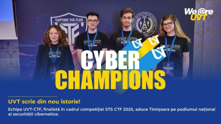 Timișoara urcă pe podiumul național al securității cibernetice prin rezultatele studenților UVT, care au demonstrat că performanța digitală se scrie cu pasiune și inteligență. În 25 octombrie, echipa „UVT-CTF”, reprezentând Facultatea de Informatică a UVT, a scris istorie digitală la București, în cadrul competiției STS CTF 2025, organizată de Serviciul de Telecomunicații Speciale, o adevărată olimpiadă a minților ascuțite.