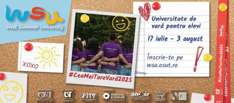 Timp de aproape trei săptămâni, Universitatea de Vest din Timișoara este gazda a peste 300 de liceeni din România și Republica Moldova, participanți la școala de vară West Summer University (WSU) –un proiect al studenților pentru viitorii studenți!