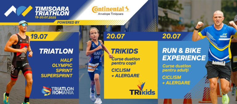 Sâmbătă, 19 iulie – Piața Libertății Competiția „Timișoara Triathlon powered by Continental Anvelope Timișoara” 2025