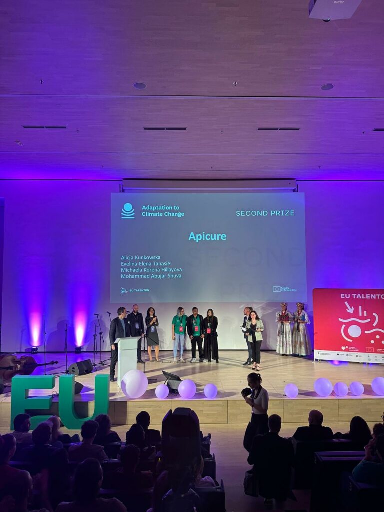 „Vreau să vă încurajez sincer să aplicați la EU TalentOn. Pentru mine a fost una dintre cele mai faine experiențe din timpul parcursului academic. Am aplicat ca doctorand, dar puteți aplica și ca studenți sau masteranzi. Procesul de aplicare este foarte simplu și accesibil, așa că merită încercat fără ezitare. Eu am participat în 2024, la Katowice, și a fost pentru prima dată când am plecat singură într-o astfel de experiență, chiar am mers cu autobuzul până în Polonia. Unul dintre cele mai frumoase lucruri a fost faptul că am întâlnit oameni noi din toată Europa, inclusiv români din alte universități. Am lucrat în echipe interdisciplinare, ceea ce a fost extrem de interesant. Ai ocazia să descoperi cum gândesc alții, din domenii complet diferite, și să înveți cum să colaborezi eficient pentru a construi o idee de afacere împreună. În plus, transportul și cazarea sunt asigurate, ceea ce face experiența și mai accesibilă. Chiar merită din plin pentru oportunitățile pe care le oferă. Există inclusiv șansa de a pleca cu un premiu, așa cum s-a întâmplat în cazul meu și al echipei mele (Second Prize). Vă încurajez să profitați de această oportunitate. Este o experiență care vă poate deschide perspective noi și vă poate aduce multă încredere în propriile forțe. Mult succes și curaj!”