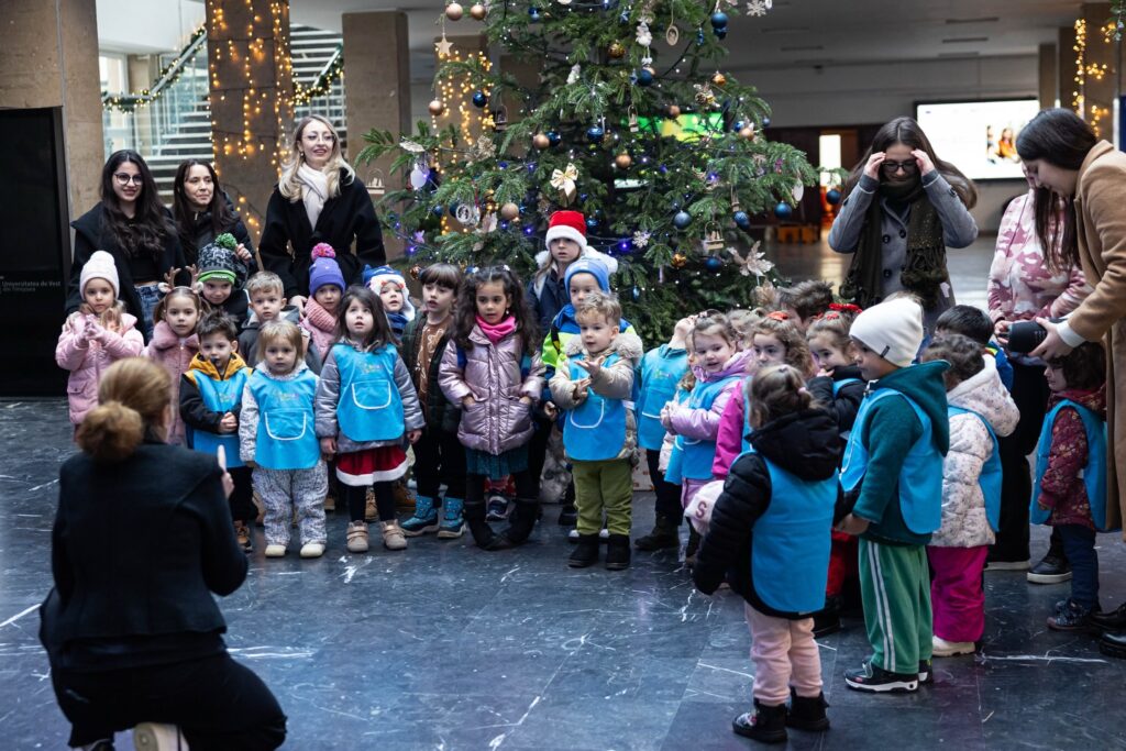 Nu în ultimul rând, opiii de la Grădinița „Smart Start UVT” ne-au adus bucuria sărbătorilor prin colinde pline de emoție, zâmbete largi și mult entuziasm. Grupele de copii au cântat cu candoare, ne-au încălzit sufletele și ne-au reamintit cât de frumos este Crăciunul atunci când este privit prin ochi de copii. Întreaga comunitate le-a mulțumit din inimă pentru acest moment minunat și le-a dorim o vacanță plină de joacă, râsete și povești frumoase.