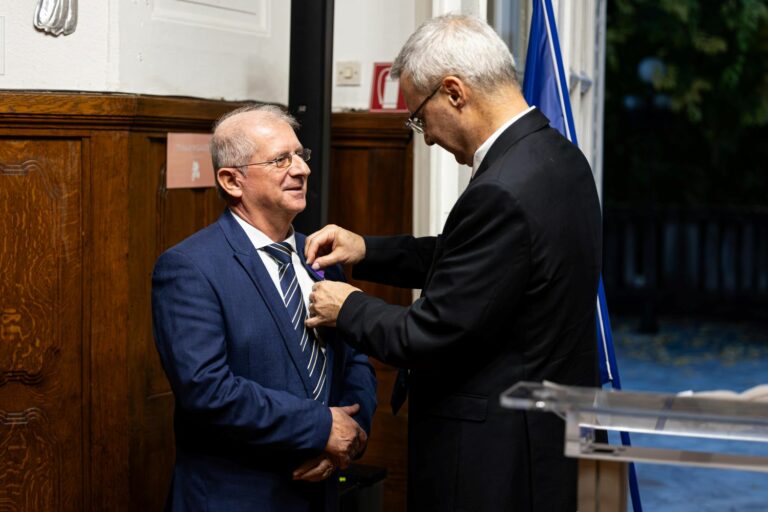 La Institutul Francez din Timișoara a avut loc sâmbătă, 26 octombrie 2024, ceremonia de decernare a distincției Chevalier de L’Ordre des Palmes Académiques, domnului prof. univ. dr. Nicolae Popa, de la Departamentul de Geografie al Universității de Vest din Timișoara. Înmânarea scrisorii oficiale și a însemnelor simbolice a fost realizată de către Excelența Sa Nicolas Warnery, Ambasadorul Republicii Franceze în România. A participat și doamna Tilla Rudel, directoarea Institutului Francez, precum și un public numeros, atașat de limba franceză și de valorile Francofoniei.