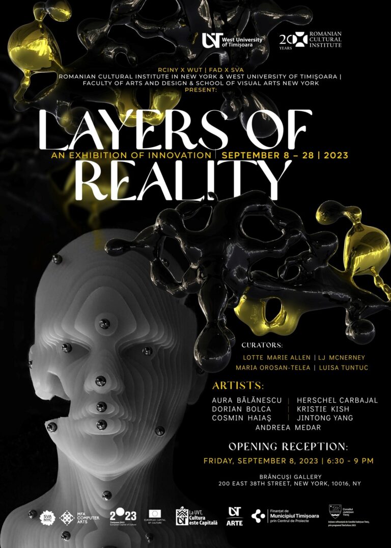 Facultatea de Arte și Design din cadrul Universității de Vest din Timișoara, în parteneriat cu ICR New York și School of Visual Arts – Computer Arts Department din New York, prezintă publicului new-yorkez expoziția internațională de grup “Layers of Reality”, un dialog artistic transatlantic între școala de arte vizuale de la UVT și școala de arte vizuale din New York.