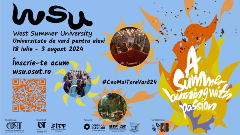 Înscrierea pentru a participa la ediția 2024 a West Summer University (WSU) se face prin completarea unui formular online, disponibil pe site-ul wsu.osut.ro, până cel târziu la data de 12 mai 2024.