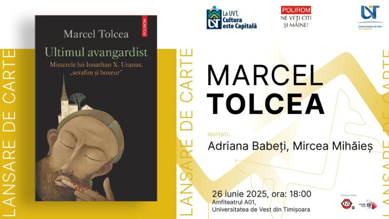 În cadrul seriei de evenimente „La UVT, Cultura este Capitală”, comunitatea academică a Universității de Vest din Timișoara are bucuria de a vă invita să participați, în data de 26 iunie 2025, de la ora 18:00, în amfiteatrul A01 (sediul principal UVT, V.Pârvan nr.4), la evenimentul de lansare a volumului „Ultimul avangardist. Misterele lui Ionathan X. Uranus, serafim și boxeur“, semnat de Marcel Tolcea. Ionathan X. Uranus este pseudonimul lui Marcel Avramescu, scriitor avangardist român de secol 20.