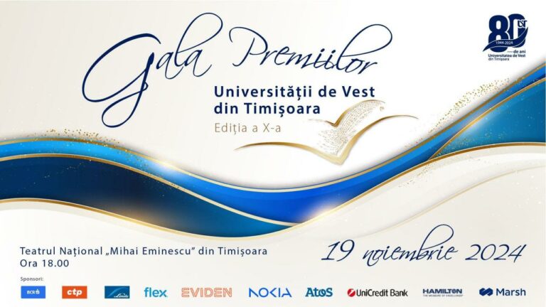 Comunitatea academică a Universității de Vest din Timișoara s-a reunit în seara de 19 noiembrie 2024, în spațiul elegant al Teatrului Național „Mihai Eminescu” din Timișoara, pentru a recunoaște meritele și performanțele remarcabile ale membrilor săi. Împreună, invitați din comunitate, reprezentanți ai partenerilor instituționali, cadre didactice, studenți și cercetători, au sărbătorit excelența și performanțele universitare în cadrul Galei Premiilor UVT 2024.