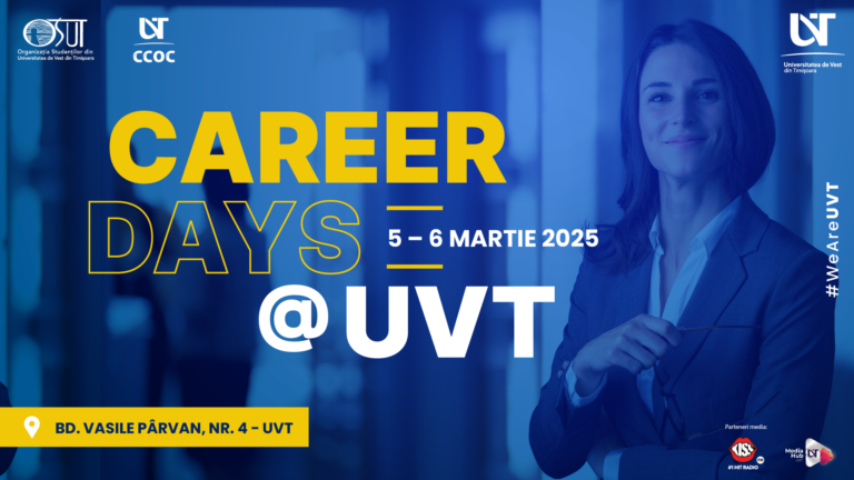 Primul dintre acestea se va desfășura în perioada 5-6 martie 2025, când, la Universitatea de Vest din Timișoara, se va organiza o nouă ediție a târgului Career Days@UVT, cel mai important eveniment de networking dedicat studenților și absolvenților care doresc să își construiască o carieră de succes.