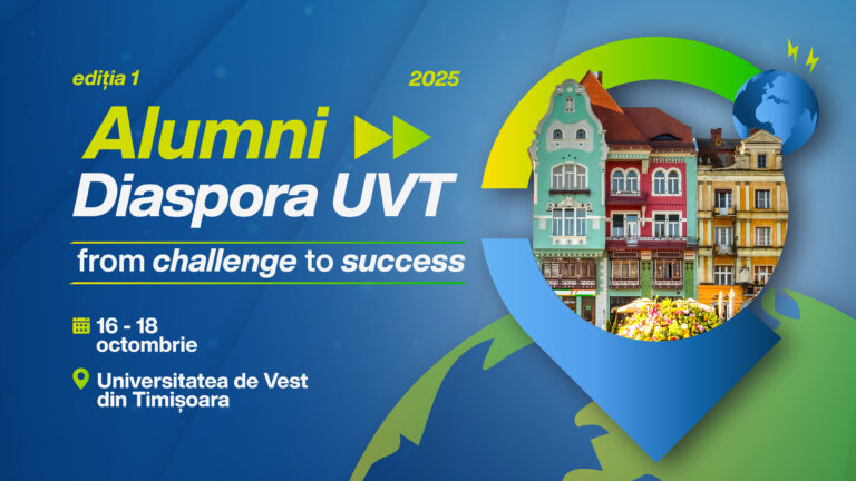 Universitatea de Vest din Timișoara (UVT) are deosebita plăcere de a anunța organizarea primei ediții a Conferinței Alumni Diaspora UVT, care se va desfășura în perioada 16–17 octombrie 2025, sub motto-ul: „Research connecting brilliant minds – from challenge to success (Cercetarea conectează mințile strălucite – de la provocare la succes)”.