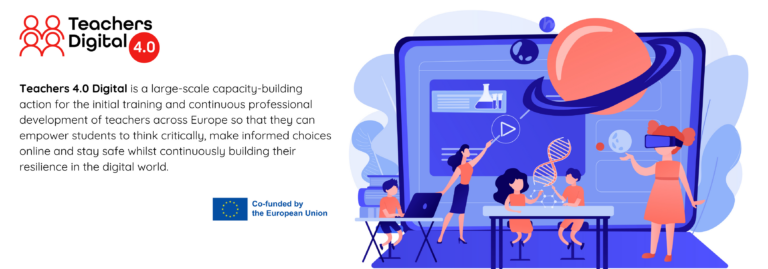 Teachers 4.0 Digital oferă o activitate de consolidare a capacităților pe scară largă pentru formarea inițială și dezvoltarea profesională continuă a profesorilor și educatorilor la nivel european. Pentru mai multe detalii urmăriți site-ul proiectului: https://teachers4digitalage.eu/ro/project/.