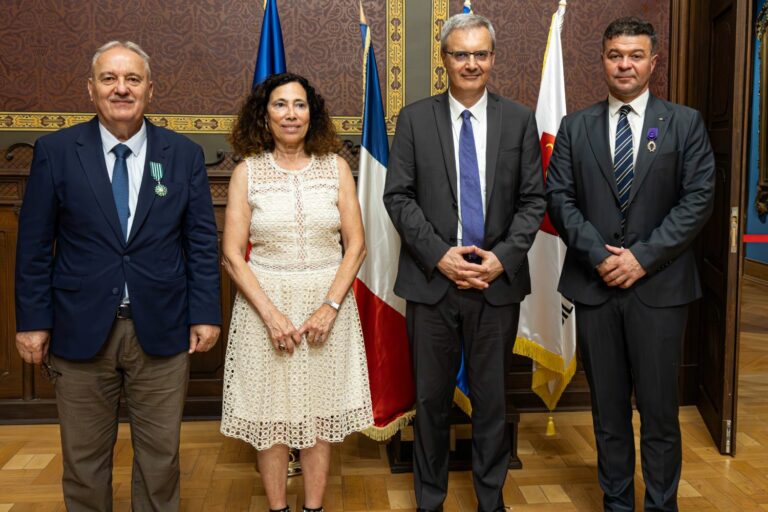 Imagini din cadrul ceremoniei de decernare a distincțiilor Officier de L’ordre des Palmes académiques, domnului prof.univ.dr. Marilen Gabriel Pirtea și Chevalier de L’ordre des Arts et des Lettres, domnului prof.univ.dr. Mircea Mihăieș.