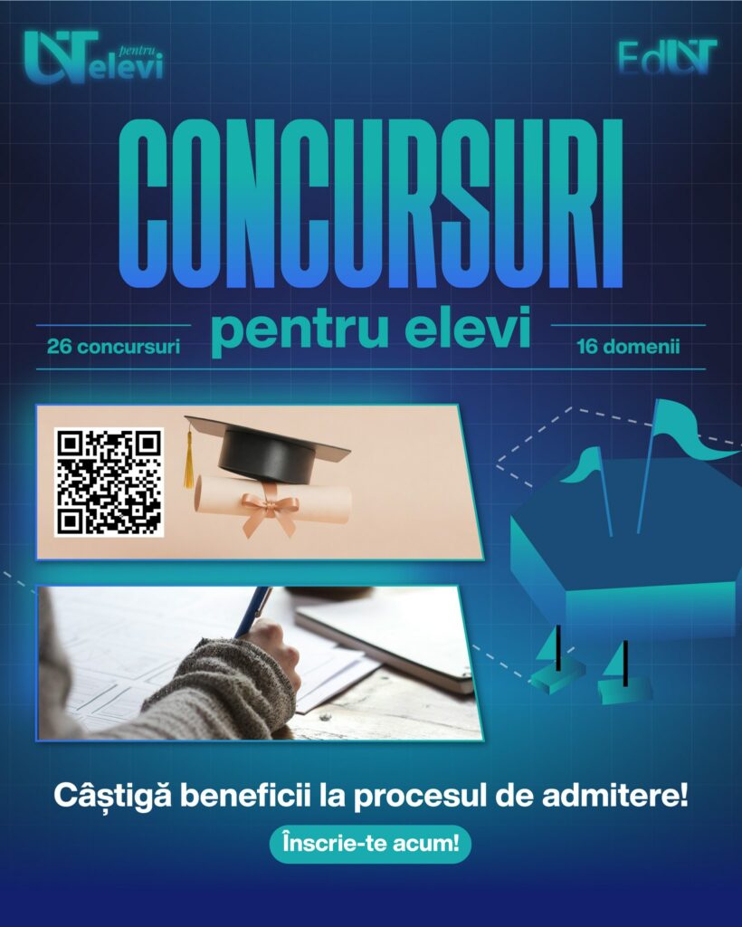 - Concursul național BIOS: înscriere până în data de 30.04.2026, iar probele de concurs se desfășoară în 16.05.2026. Se adresează elevilor claselor IX-XII, inclusiv, de la toate profilurile de studiu.