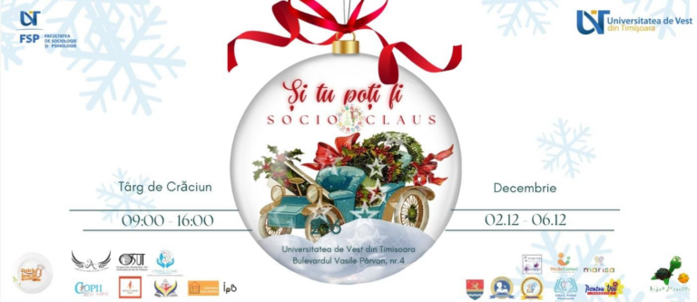 Departamentul de Sociologie din cadrul Facultății de Sociologie și Psihologie, cu sprijinul studenților voluntari din cadrul Universității de Vest din Timișoara, organizează în perioada 2-6 decembrie 2024 cea de-a șaptea ediție a campaniei „Socio Claus”.