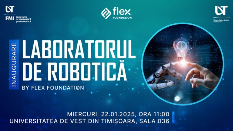 Universitatea de Vest din Timișoara (UVT) anunță realizarea și dotarea Laboratorului de Robotică, un proiect care a fost operaționalizat în urma investiției realizate pe baza unei finanțări din partea Flex Foundation.