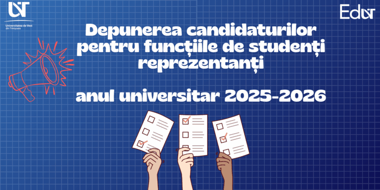 În perioada 1-6 noiembrie 2025 se pot depune candidaturile pentru funcțiile de reprezentanți ai studenților în: Consiliul Facultății, Consiliile Școlilor Doctorale, Senatul Universitar și Consiliul pentru Studiile Universitare de Doctorat, pentru mandatul 2025-2026.