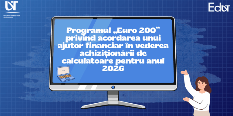 Pentru obținerea ajutorului aferent achiziționării unui calculator în baza Legii nr. 269/2004, studenții UVT vor depune o cerere-tip, până la data de 15 mai 2026, prin e-mail, la adresa euro200@e-uvt.ro, însoțită de următoarele documente.